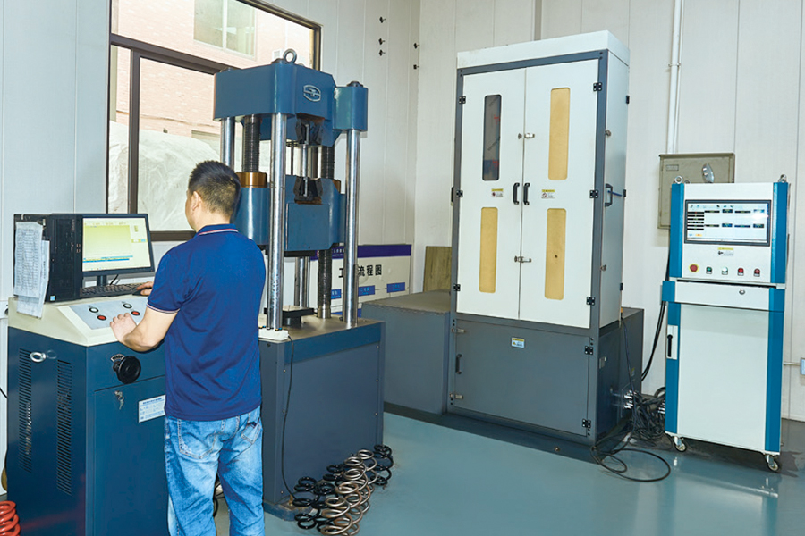 این شرکت یک مرکز تست مستقل ایجاد کرده و دارای ابزار و تجهیزات تست در چین است. دارای قابلیت تست در زمینه خواص مکانیکی فلزات، عملکرد فرآیند فلز، بازرسی متالوگرافی عملیات حرارتی، آنالیز شیمیایی فلزات، خوردگی و حفاظت فلزات، فنرهای مارپیچ استوانه ای و غیره می باشد و قابلیت انجام تست با کارایی کامل بر روی مواد و فنرهای مختلف از جمله تست های متناوب روی پوشش ها و سایر آزمایش های سطحی، تست های فنر و اسپری های چربی را دارد. فنرهای ترمز.